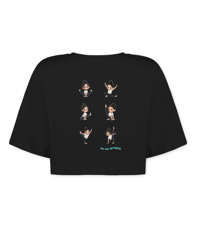 O cropped Terapia traz leveza, estilo e bom humor em uma única peça. Com modelagem soltinha, ele oferece conforto sem perder o toque moderno, perfeito para composições casuais ou para acompanhar sua rotina de movimento. A estampa divertida — “Hoje não posso, tenho terapia… eu na terapia” — ganha vida com ilustrações fofas inspiradas no Pilates, tornando o cropped uma peça única que expressa personalidade dentro e fora do studio.